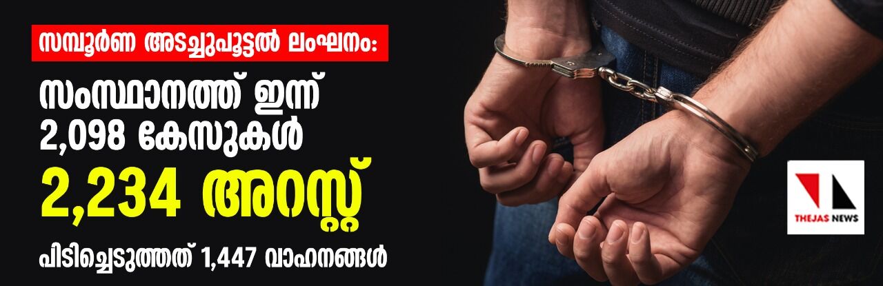 സമ്പൂര്ണ അടച്ചുപൂട്ടല് ലംഘനം: സംസ്ഥാനത്ത് ഇന്ന് 2,098 കേസുകള്; 2,234 അറസ്റ്റ്, പിടിച്ചെടുത്തത് 1,447 വാഹനങ്ങള്