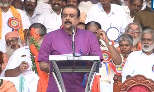 സനാതനധര്മം സംരക്ഷിക്കാനുള്ള അവസാന അവസരമാണിത്. ക്ഷേത്രത്തിന്റെ പ്രാധാന്യം സര്ക്കാര് സുപ്രിംകോടതിയെ ബോധ്യപ്പെടുത്തിയില്ല. അയ്യപ്പജ്യോതിയാണോ വനിതാ മതിലാണോ വലുതെന്ന് വിശ്വാസികള് 2019ല് തെളിയിക്കണം. ഈ അവസരം പാഴാക്കരുത്. ശബരിമല ഒരു തീര്ത്ഥാടന കേന്ദ്രമാണ്. നൂറുകണക്കിന് വിശ്വാസികളെത്തുന്നത് ക്ഷേത്രത്തിന്റെ പ്രത്യേകതകൊണ്ടാണ്. ആചാരമനുഷ്ഠിച്ച വിശ്വാസികളായ ഒരു സ്ത്രീപോലും അവിടെ വന്നില്ല. വിശ്വാസമില്ലാത്ത ഏതാനും സ്ത്രീരൂപങ്ങളെ എത്തിക്കാനുള്ള ശ്രമമാണ് സര്ക്കാര് നടത്തിയതെന്നും അദ്ദേഹം കൂട്ടിച്ചേര്ത്തു. അയ്യപ്പഭക്തസംഗമം മാതാ അമൃതാനന്ദമയി ആണ് ഉദ്ഘാടനം ചെയ്തത്.