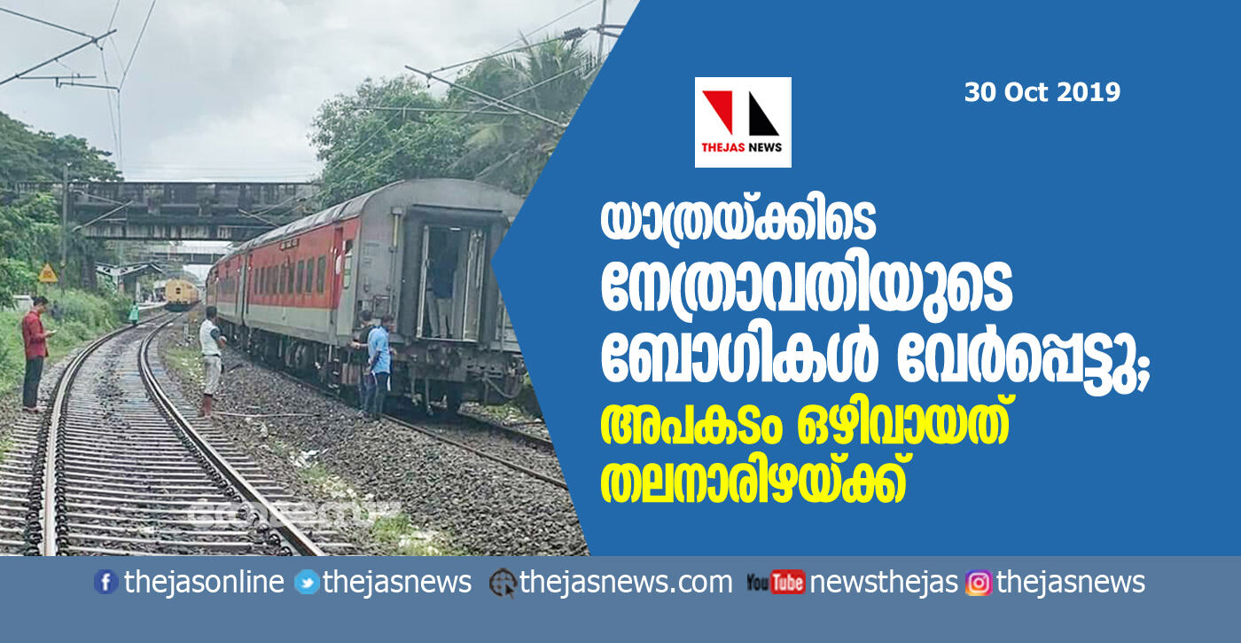 യാത്രയ്ക്കിടെ നേത്രാവതിയുടെ ബോഗികള് വേര്പ്പെട്ടു; അപകടം ഒഴിവായത് തലനാരിഴയ്ക്ക്