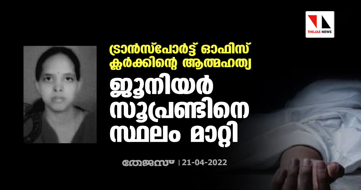 ട്രാന്സ്പോര്ട്ട് ഓഫിസ് ക്ലര്ക്കിന്റെ ആത്മഹത്യ; ജൂനിയര് സൂപ്രണ്ടിനെ സ്ഥലം മാറ്റി