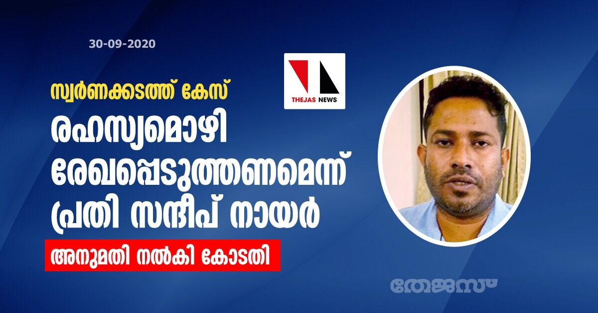സ്വര്ണക്കടത്ത് കേസ്: രഹസ്യമൊഴി രേഖപ്പെടുത്തണമെന്ന് പ്രതി സന്ദീപ് നായര്; അനുമതി നല്കി കോടതി