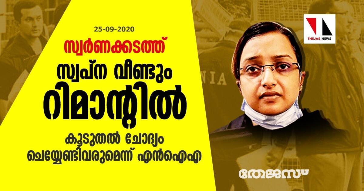 സ്വര്ണക്കടത്ത്: സ്വപ്ന വീണ്ടും റിമാന്റില്; കൂടുതല് ചോദ്യം ചെയ്യേണ്ടിവരുമെന്ന് എന് ഐ എ