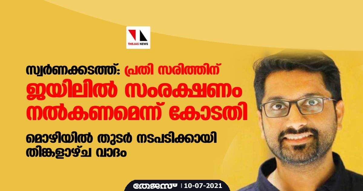 സ്വര്ണക്കടത്ത്: പ്രതി സരിത്തിന് ജെയിലില് സംരക്ഷണം നല്കണമെന്ന് കോടതി; മൊഴിയില് തുടര് നടപടിക്കായി തിങ്കളാഴ്ച വാദം