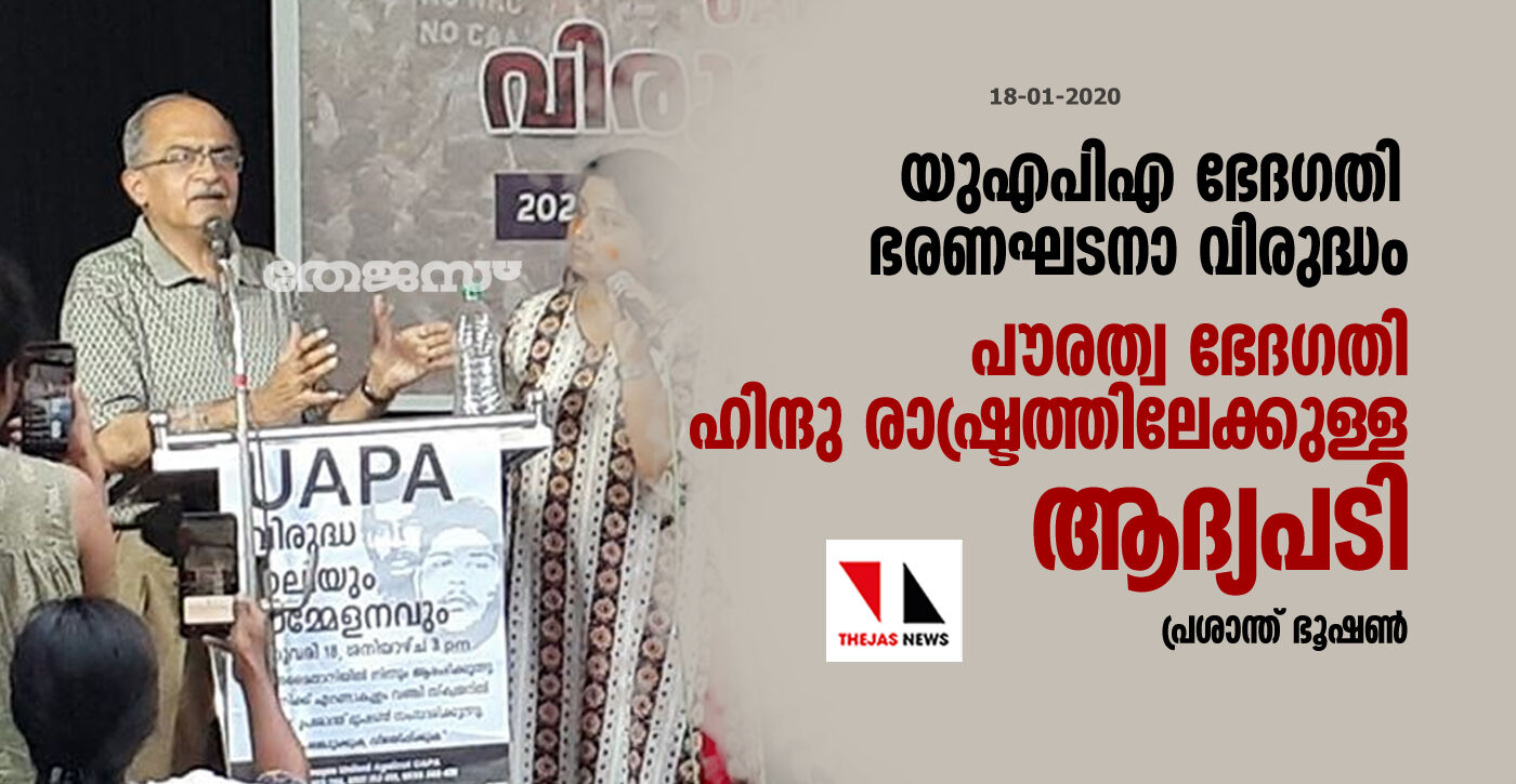 യുഎപിഎ ഭേദഗതി ഭരണഘടനാ വിരുദ്ധം; പൗരത്വ ഭേദഗതി ഹിന്ദു രാഷ്ട്രത്തിലേക്കുള്ള ആദ്യപടി: പ്രശാന്ത് ഭൂഷണ്