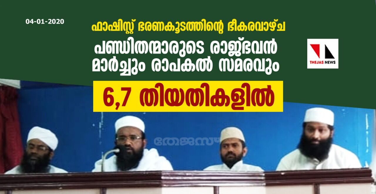 പണ്ഡിതന്മാരുടെ രാജ്ഭവന് മാര്ച്ചും രാപകല് സമരവും 6,7 തിയതികളില്