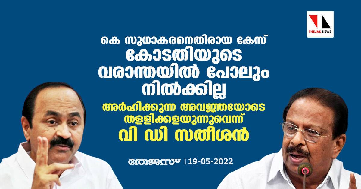 കെ സുധാകരനെതിരായ കേസ് കോടതിയുടെ വരാന്തയില് പോലും നില്ക്കില്ല;അര്ഹിക്കുന്ന അവജ്ഞയോടെ തളളിക്കളയുന്നുവെന്ന് വി ഡി സതീശന്
