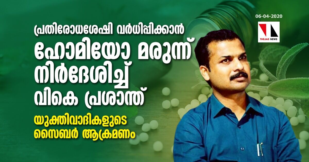 പ്രതിരോധശേഷി വര്ധിപ്പിക്കാന് ഹോമിയോ മരുന്ന് നിര്ദേശിച്ച് വികെ പ്രശാന്ത്; യുക്തിവാദികളുടെ സൈബർ ആക്രമണം