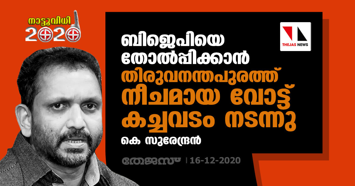 ബിജെപിയെ തോല്പ്പിക്കാന് തിരുവനന്തപുരത്ത് നീചമായ വോട്ട് കച്ചവടം നടന്നു; കെ സുരേന്ദ്രന്