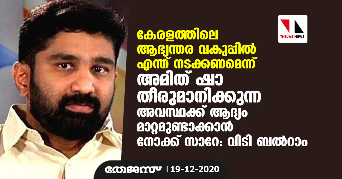 കേരളത്തിലെ ആഭ്യന്തര വകുപ്പില് എന്ത് നടക്കണമെന്ന് അമിത് ഷാ തീരുമാനിക്കുന്ന അവസ്ഥക്ക് ആദ്യം മാറ്റമുണ്ടാക്കാന് നോക്ക് സാറേ: വിടി ബല്റാം