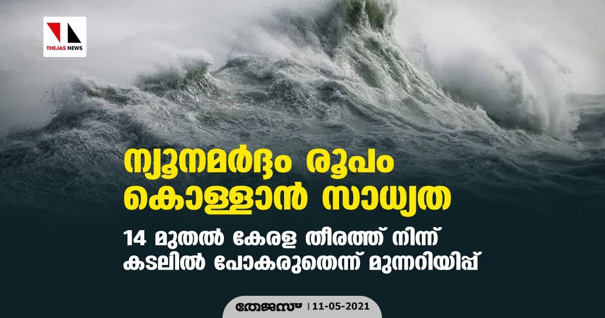 ന്യൂനമര്ദ്ദം രൂപം കൊള്ളാന് സാധ്യത; 14 മുതല് കേരള തീരത്ത് നിന്ന് കടലില് പോകരുതെന്ന് മുന്നറിയിപ്പ്