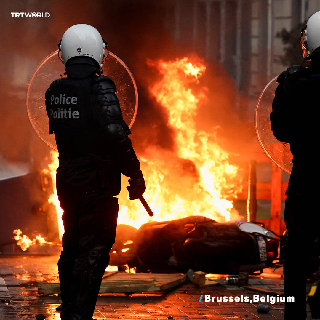 ബെല്ജിയത്തിന്റെ തലസ്ഥാനമായ ബ്രസ്സല്സില് പ്രതിഷേധക്കാര് വാഹനത്തിന് തീയിട്ടപ്പോള്