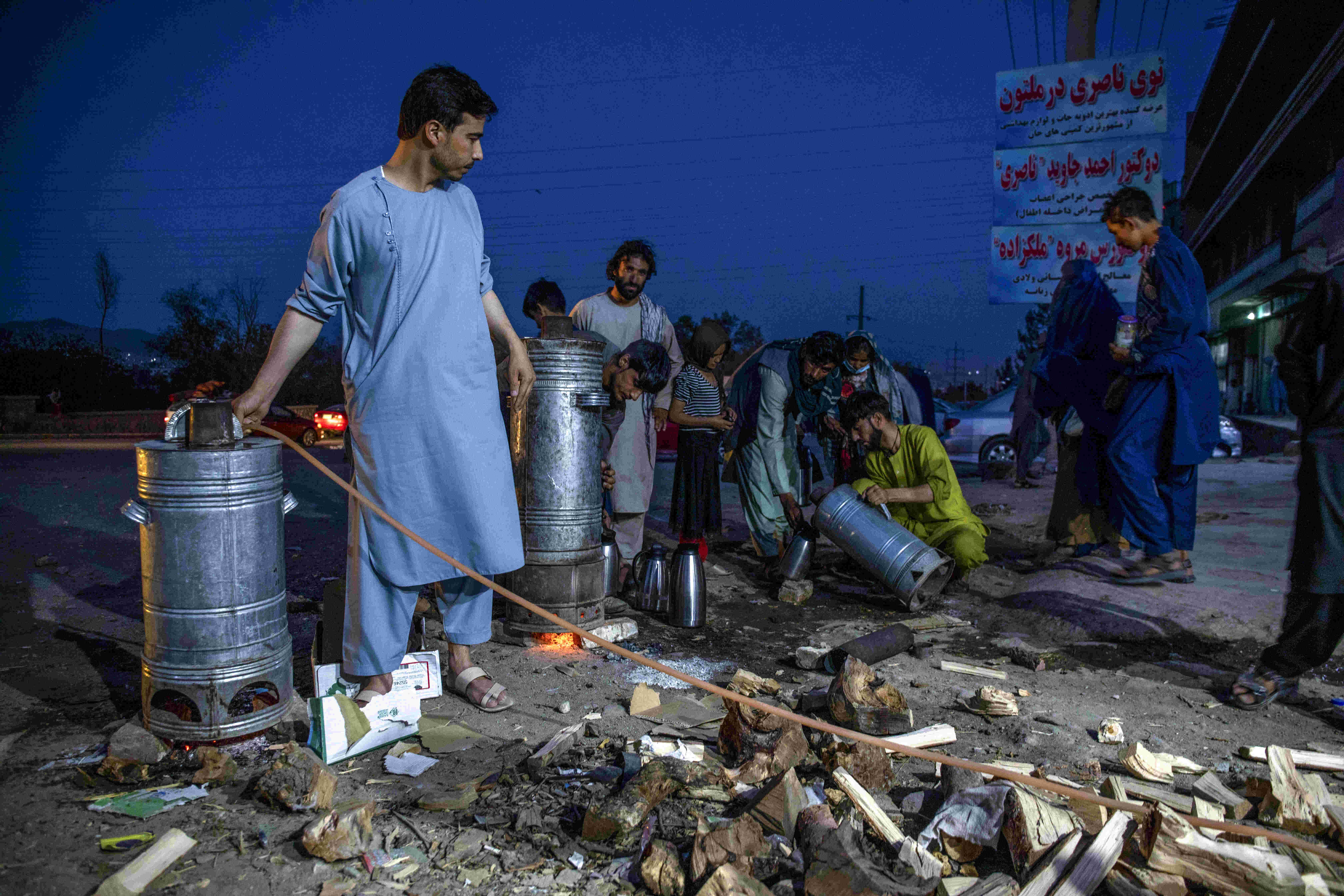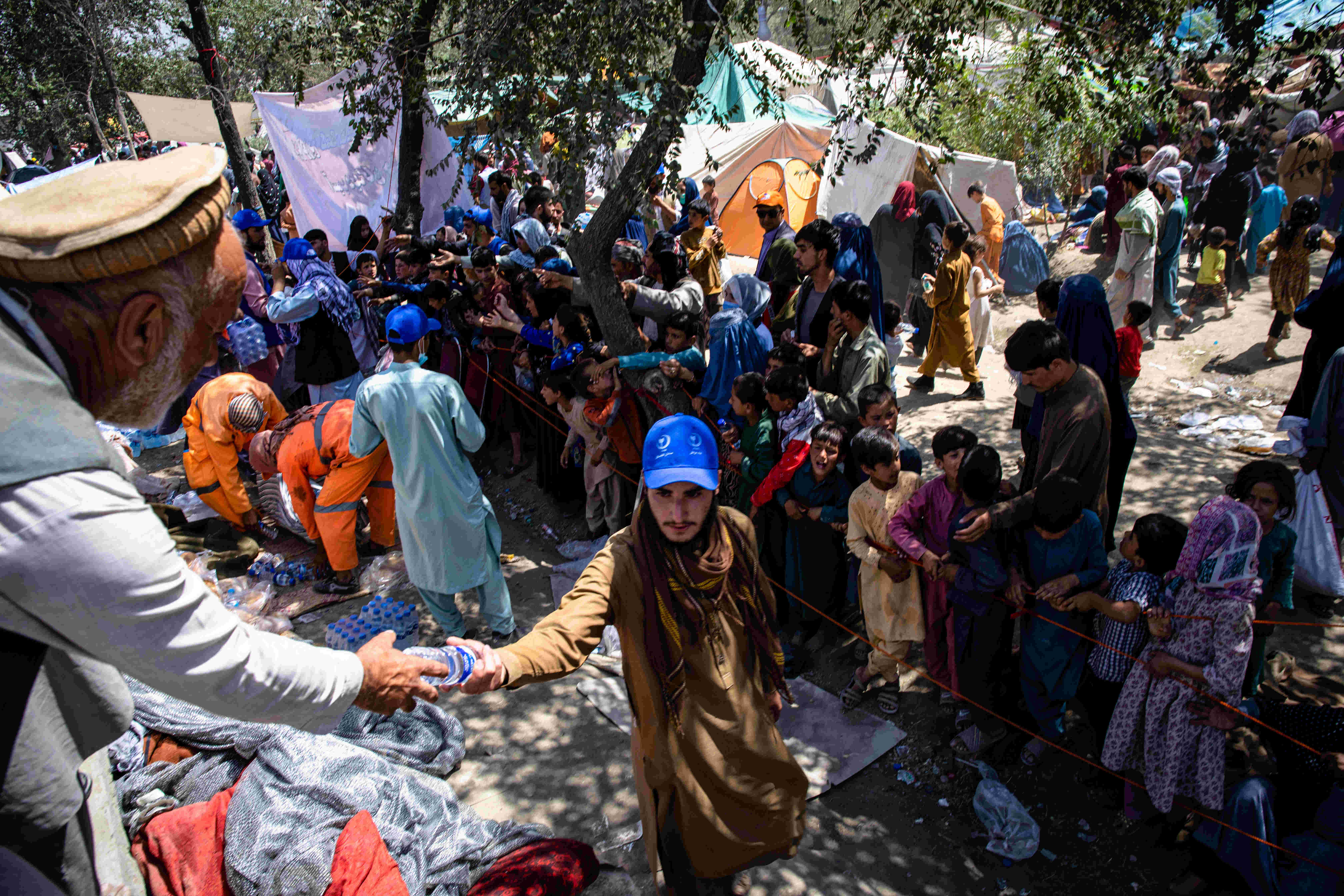 കാബൂളില് അഭയം തേടിയവര്ക്ക് കുടിവെള്ളവും മറ്റും വിതരണം ചെയ്യുന്ന എന്ജിഒ പ്രവര്ത്തകര്