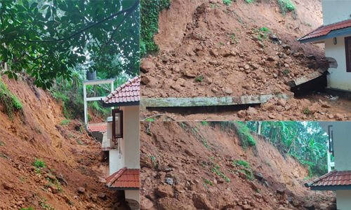 വെള്ളാവൂര് ഏറത്തുവടകര പൊന്നടത്താംകുഴി അലക്സാണ്ടറുടെ വീട്ടിലേക്ക് മണ്തിട്ട ഇടിഞ്ഞുവീണ നിലയില്