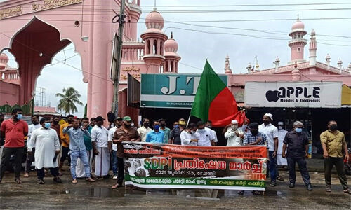 ബീമാപള്ളി പോലിസ് വെടിവെയ്പ് അന്വേഷിച്ച ജസ്റ്റിസ് രാമകൃഷ്ണന് കമ്മിഷന് റിപോര്ട്ട് പുറത്തുവിടുക, വെടിയേറ്റ് ഗുരുതരാവസ്ഥയില് കഴിയുന്ന നിരപരാധികള്ക്ക് അര്ഹമായ സഹായം നല്കുക, കുറ്റക്കാര്ക്കെതിരേ നടപടി സ്വീകരിക്കുക എന്നീ ആവശ്യങ്ങളും പാര്ട്ടി പ്രതിഷേധ പരിപാടിയില് ഉയര്ത്തി.