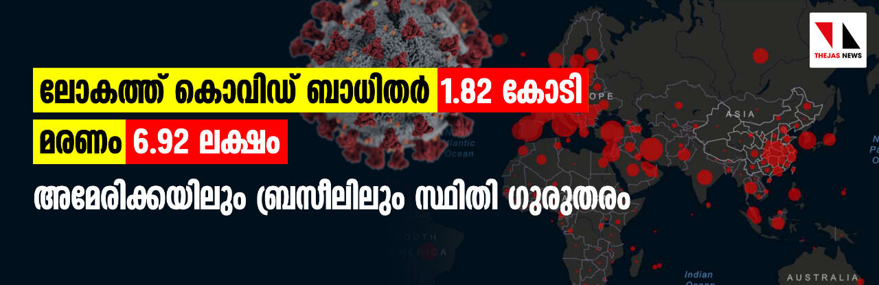 ലോകത്ത് 1.82 കോടി കൊവിഡ് ബാധിതര്; 6.92 ലക്ഷം മരണം, അമേരിക്കയിലും ബ്രസീലിലും സ്ഥിതി ഗുരുതരം