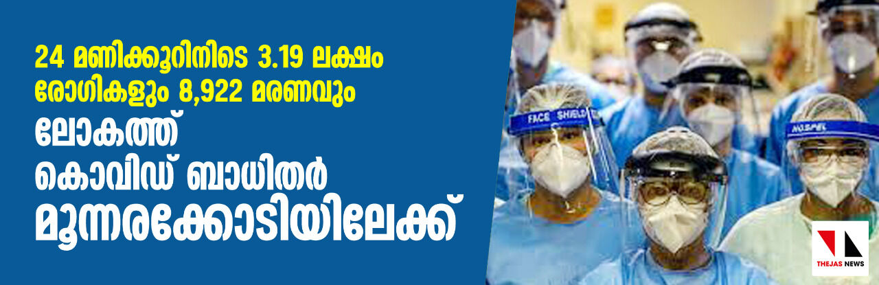 24 മണിക്കൂറിനിടെ 3.19 ലക്ഷം രോഗികളും 8,922 മരണവും; ലോകത്ത് കൊവിഡ് ബാധിതര് മൂന്നരക്കോടിയിലേക്ക്
