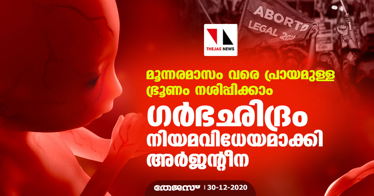 മൂന്നരമാസം വരെ പ്രായമുള്ള ഭ്രൂണം നശിപ്പിക്കാം; ഗര്ഭഛിദ്രം നിയമവിധേയമാക്കി അര്ജന്റീന