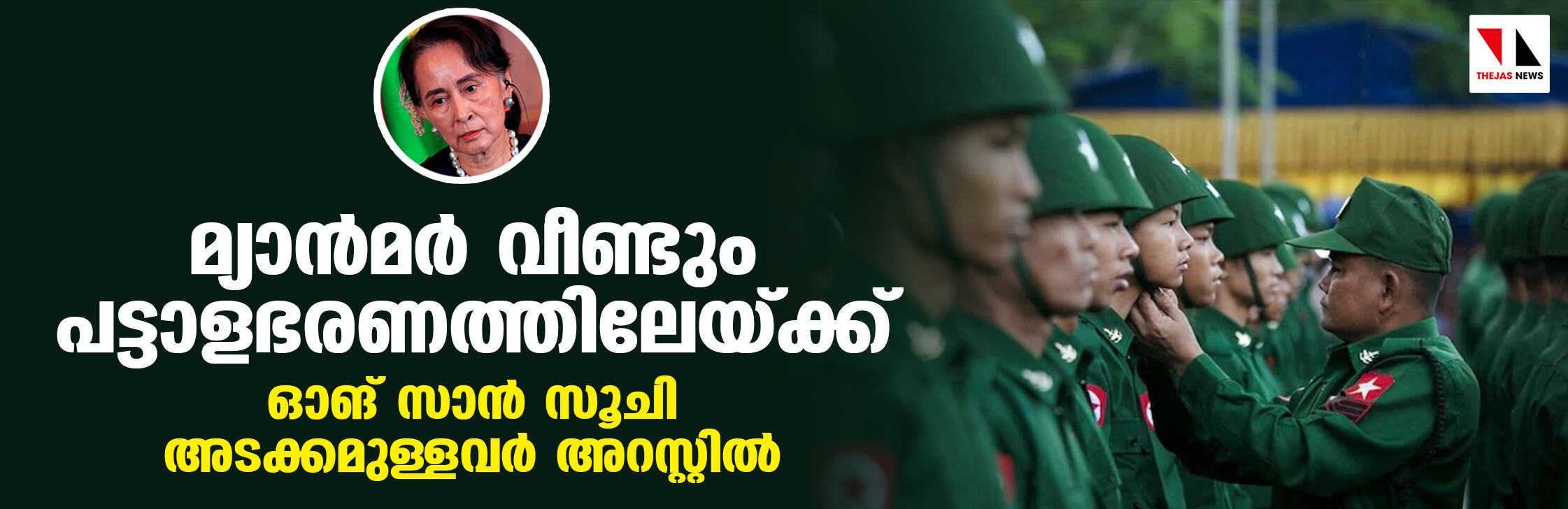 മ്യാന്മര് വീണ്ടും പട്ടാളഭരണത്തിലേയ്ക്ക്; ഓങ് സാന് സൂചി അടക്കമുള്ളവര് അറസ്റ്റില്
