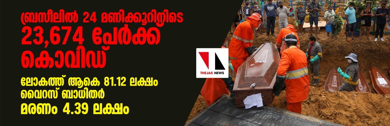 ബ്രസീലില് 24 മണിക്കൂറിനിടെ 23,674 പേര്ക്ക് കൊവിഡ്; ലോകത്ത് ആകെ 81.12 ലക്ഷം വൈറസ് ബാധിതര്, മരണം 4.39 ലക്ഷം