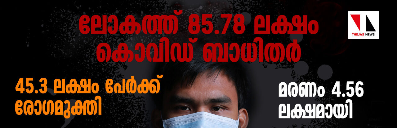 ലോകത്ത് 85.78 ലക്ഷം കൊവിഡ് ബാധിതര്; 45.3 ലക്ഷം പേര്ക്ക് രോഗമുക്തി, മരണം 4.56 ലക്ഷമായി