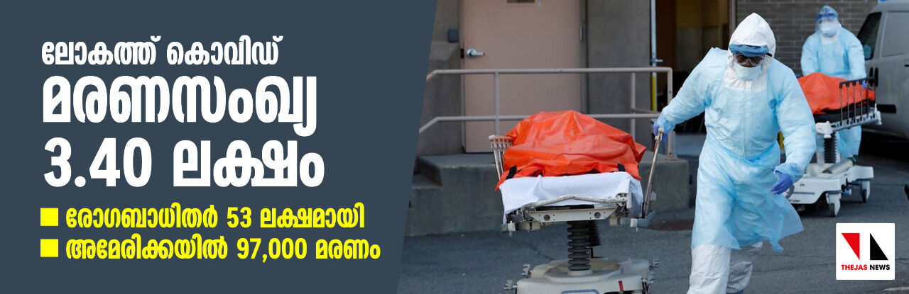 ലോകത്ത് കൊവിഡ് മരണസംഖ്യ 3.40 ലക്ഷം; രോഗബാധിതര് 53 ലക്ഷമായി, അമേരിക്കയില് 97,000 മരണം
