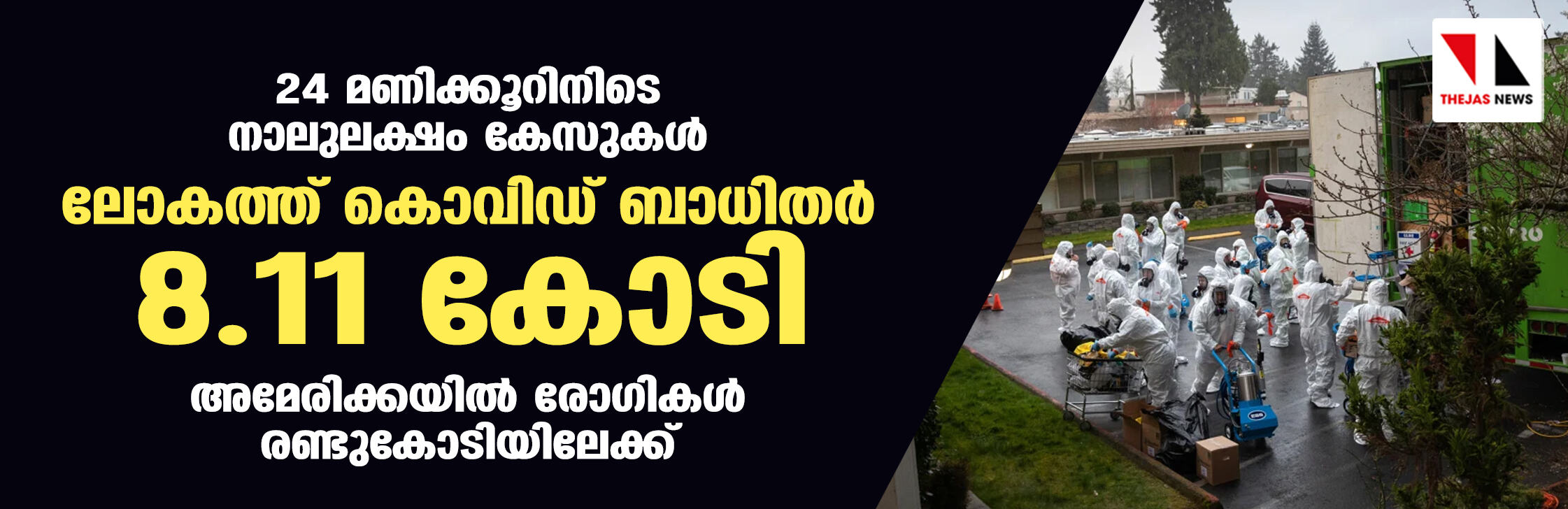 24 മണിക്കൂറിനിടെ നാലുലക്ഷം കേസുകള്; ലോകത്ത് കൊവിഡ് ബാധിതര് 8.11 കോടി, അമേരിക്കയില് രോഗികള് രണ്ടുകോടിയിലേക്ക്