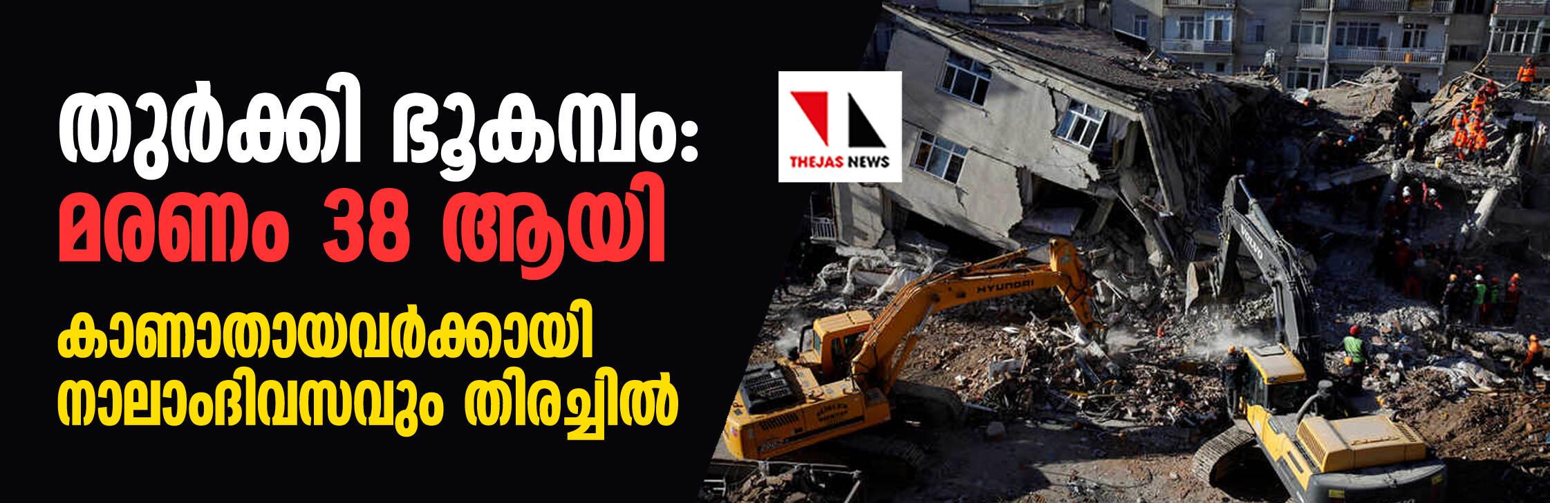 തുര്ക്കി ഭൂകമ്പം: മരണം 38 ആയി, കാണാതായവര്ക്കായി നാലാംദിവസവും തിരച്ചില്