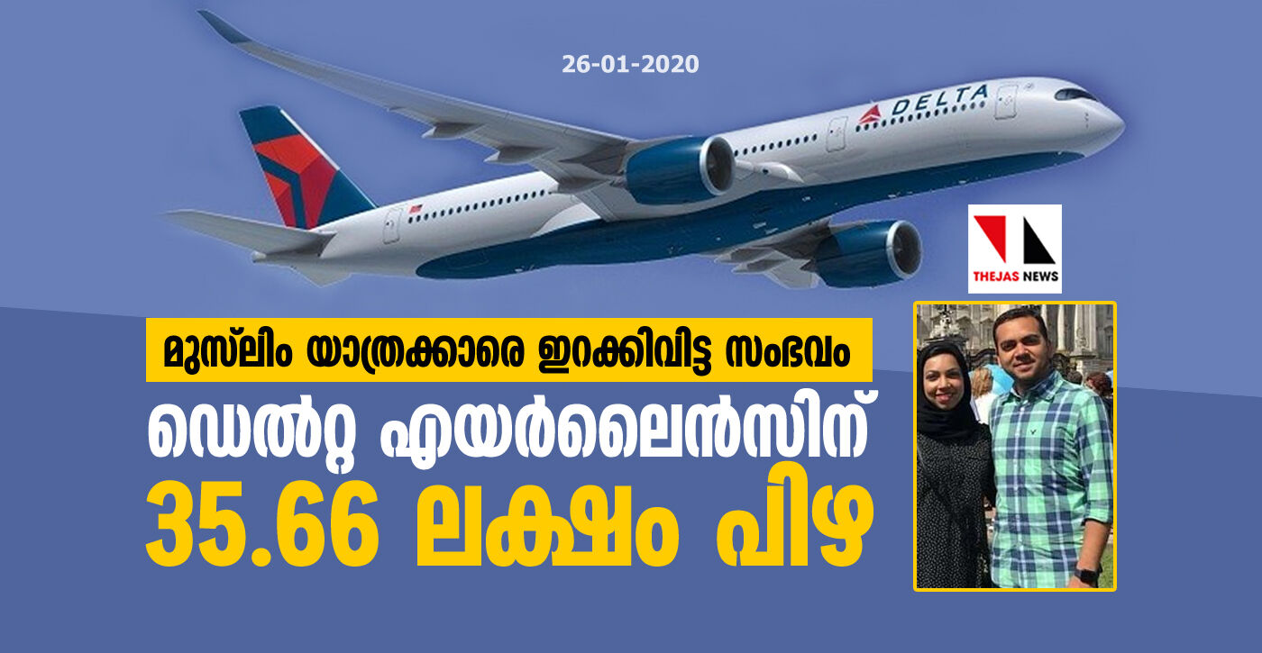 മുസ്ലിം യാത്രക്കാരെ ഇറക്കിവിട്ട സംഭവം: ഡെല്റ്റ എയര്ലൈന്സിന് 35.66 ലക്ഷം പിഴ