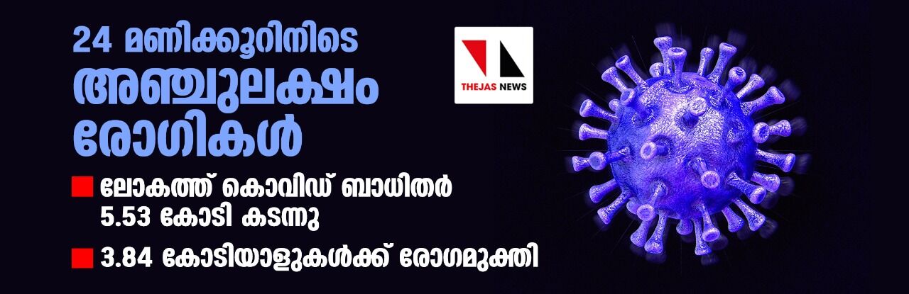 24 മണിക്കൂറിനിടെ അഞ്ചുലക്ഷം രോഗികള്; ലോകത്ത് കൊവിഡ് ബാധിതര് 5.53 കോടി കടന്നു, 3.84 കോടിയാളുകള്ക്ക് രോഗമുക്തി