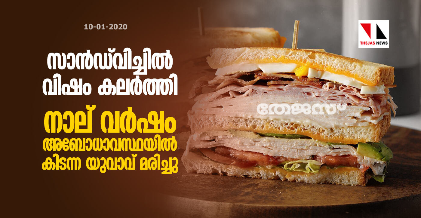 സാന്ഡ്വിച്ചില് വിഷം കലര്ത്തി; നാല് വര്ഷം അബോധാവസ്ഥയില് കിടന്ന യുവാവ് മരിച്ചു