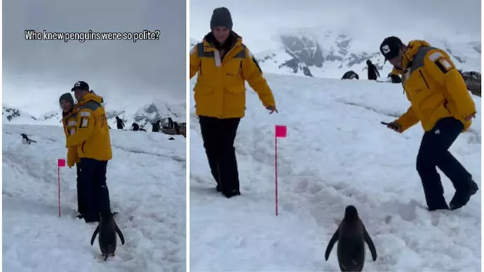 അന്റാര്ട്ടിക്കയിലെ മഞ്ഞുമൂടിയ പാതയില് ദമ്പതികള് വഴിമാറാന് കാത്തിരിക്കുന്ന പെന്ഗ്വിന്; വീഡിയോ കണ്ടത് 141 ദശലക്ഷം പേര്