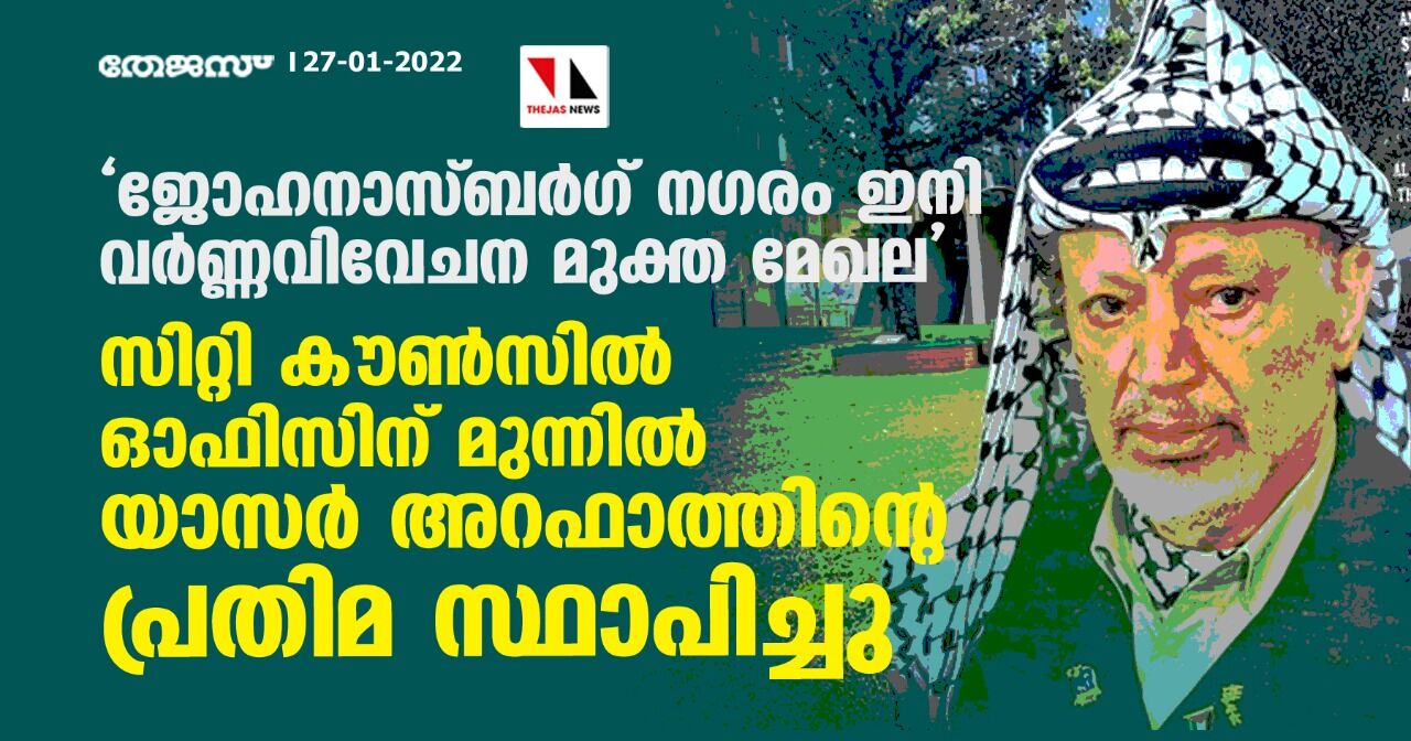 'ജൊഹാനസ്ബര്ഗ് ഇനി വര്ണ്ണവിവേചന മുക്ത മേഖല'; സിറ്റി കൗണ്സില് ഓഫിസിന് മുന്നില് യാസര് അറഫാത്തിന്റെ പ്രതിമ സ്ഥാപിച്ചു