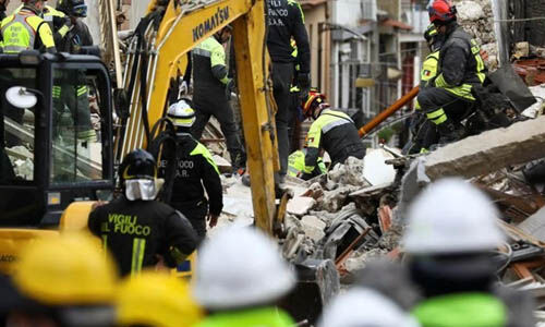കെട്ടിടാവശിഷ്ടങ്ങള്ക്കടിയില്പ്പെട്ട രണ്ടുപേര്ക്ക് വേണ്ടിയുള്ള തിരച്ചില് തുടരുകയാണെന്ന് അഗ്നിശമന സേനാംഗങ്ങള് പറഞ്ഞു. വാതക ചോര്ച്ചയാണ് സ്ഫോടനത്തിന് കാരണമെന്നാണ് പ്രാഥമിക നിഗമനം. സ്ഫോടനത്തില് നാല് വീടുകള് തകരുകയും മൂന്ന് വീടുകള്ക്ക് കേടുപാടുകള് സംഭവിക്കുകയും ചെയ്തിരുന്നു. അപകടനിലയിലായ കെട്ടിടങ്ങള് വീണ്ടും തകരാന് സാധ്യതയുള്ളതിനാല് ഏറെ ശ്രദ്ധയോടെയാണ് അവശിഷ്ടങ്ങള് നീക്കം ചെയ്യുന്നത്. ഇത് അഗ്നിശമന സേനാംഗങ്ങളെയും മാത്രമല്ല, ഞങ്ങള് തിരയുന്ന ആളുകളെയും ബാധിക്കും- ഫയര് സര്വീസ് വക്താവ് ലൂക്കാ കാരി റോയിട്ടേഴ്സിനോട് പറഞ്ഞു.