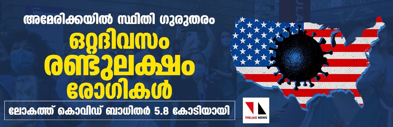 അമേരിക്കയില് സ്ഥിതി ഗുരുതരം; ഒറ്റദിവസം രണ്ടുലക്ഷം രോഗികള്, ലോകത്ത് കൊവിഡ് ബാധിതര് 5.8 കോടിയായി