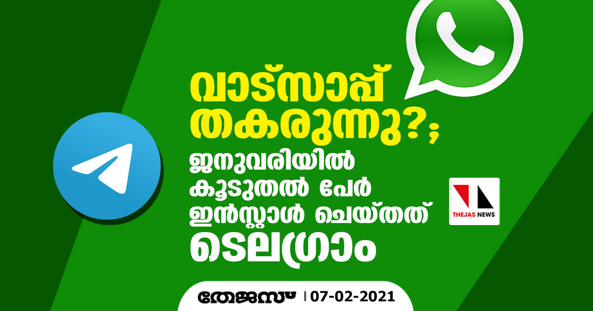 വാട്സാപ്പ് തകരുന്നു?; ജനുവരിയില് കൂടുതല് പേര് ഇന്സ്റ്റാള് ചെയ്തത് ടെലഗ്രാം