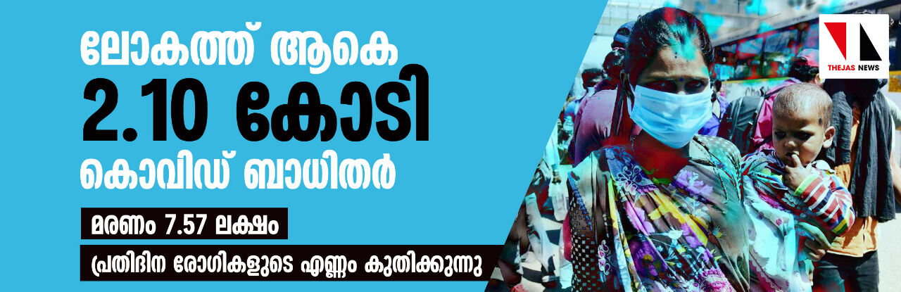 ലോകത്ത് ആകെ 2.10 കോടി കൊവിഡ് ബാധിതര്; മരണം 7.57 ലക്ഷം, പ്രതിദിന രോഗികളുടെ എണ്ണം കുതിക്കുന്നു