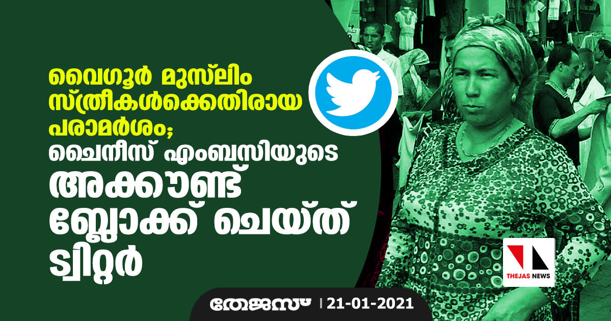 വൈഗൂര് മുസ്ലിം സ്ത്രീകള്ക്കെതിരായ പരാമര്ശം; ചൈനീസ് എംബസിയുടെ അക്കൗണ്ട് ബ്ലോക്ക് ചെയ്ത് ട്വിറ്റര്