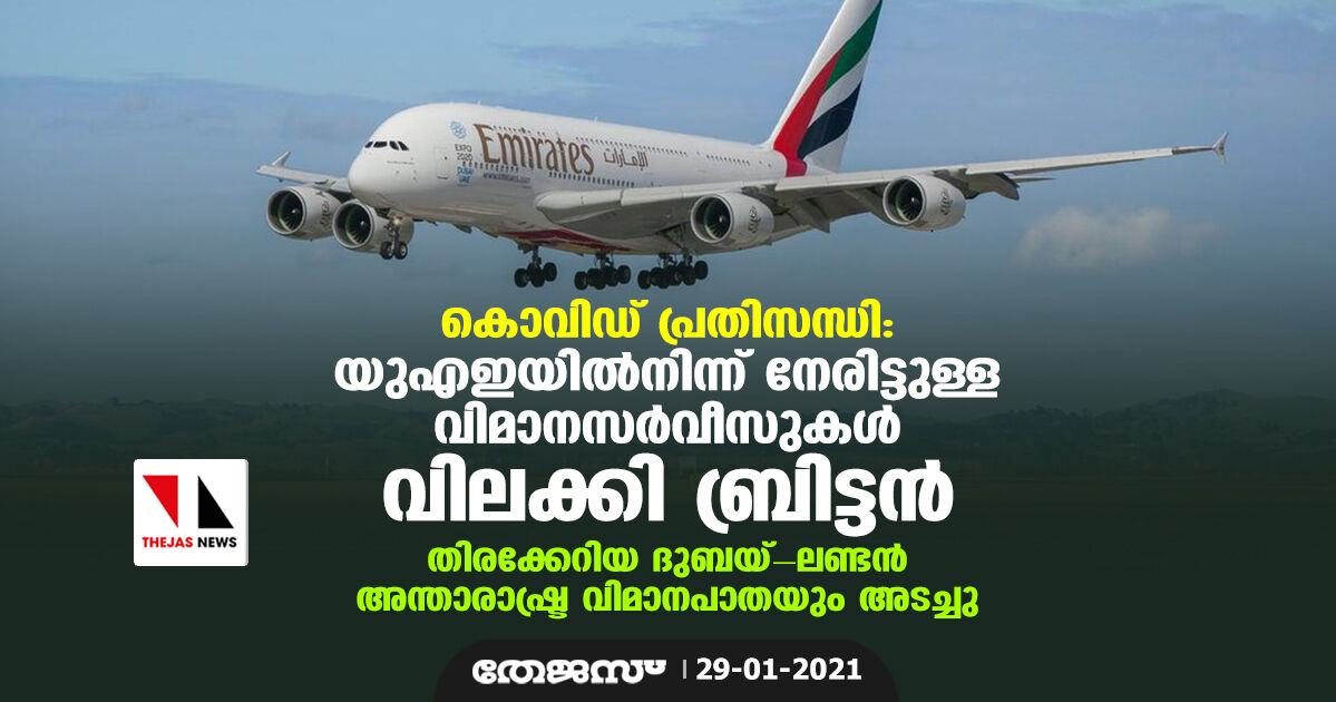 കൊവിഡ് പ്രതിസന്ധി: യുഎഇയില്നിന്ന് നേരിട്ടുള്ള വിമാനസര്വീസുകള് വിലക്കി ബ്രിട്ടന്; ദുബയ്- ലണ്ടന് അന്താരാഷ്ട്ര വിമാനപാതയും അടച്ചു