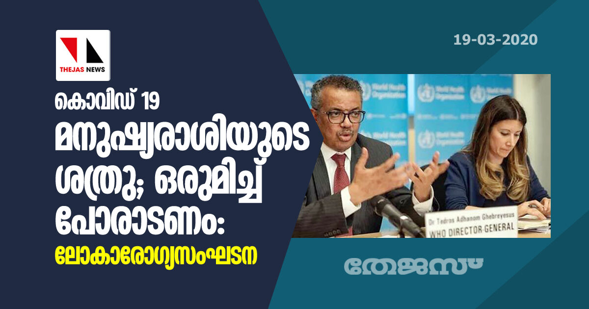കൊവിഡ് 19 മനുഷ്യരാശിയുടെ ശത്രു; ഒരുമിച്ച് പോരാടണം: ലോകാരോഗ്യസംഘടന