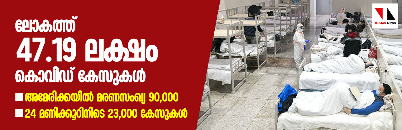 ലോകത്ത് 47.19 ലക്ഷം കൊവിഡ് കേസുകള്; അമേരിക്കയില് മരണസംഖ്യ 90,000 ആയി; 24 മണിക്കൂറിനിടെ 23,000 കേസുകള്