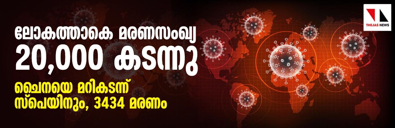 ലോകത്താകെ മരണസംഖ്യ 20,000 കടന്നു; ചൈനയെ മറികടന്ന് സ്പെയിനും, 3434 മരണം