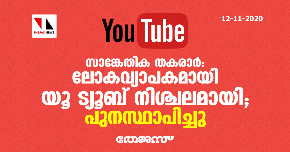 സാങ്കേതിക തകരാര്: ലോകവ്യാപകമായി യൂ ട്യൂബ് നിശ്ചലമായി; പിന്നീട് പുനസ്ഥാപിച്ചു