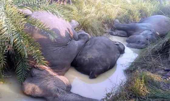 രാത്രിസമയത്ത്്് സദര് കാട്ടില് നിന്നും വെള്ളത്തിനായി ഗ്രാമത്തിലെത്തിയ ആനകളാണ് അപകടത്തില് പെട്ടത്. റെയില്വേയുടെ 11 കിലോവാട്ട് വൈദ്യുതി ലൈനില് തട്ടിയാകാം മരണകാരണമെന്ന് കരുതുന്നതായി വനംവകുപ്പ് ഉദ്യോഗസ്ഥര് പറഞ്ഞു.