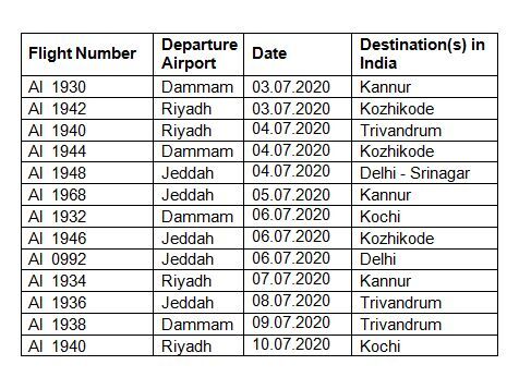 റിയാദില് നിന്ന് ജൂലൈ മൂന്നിന് കോഴിക്കോടേക്കും നാലിന് തിരുവനന്തപുരത്തേക്കും ഏഴിന് കണ്ണൂരേക്കും 10ന് കൊച്ചിയിലേക്കുമാണ് സര്വീസുകള് ക്രമീകരിച്ചിരിക്കുന്നത്. ജിദ്ദയില് നിന്ന് ജൂലൈ അഞ്ചിന് കണ്ണൂര്, ആറിന് കോഴിക്കോട്, എട്ടിന് തിരുവനന്തപുരം എന്നിങ്ങനെയും ദമ്മാമില് നിന്ന് ജൂലൈ മൂന്നിന് കണ്ണൂര്, നാലിന് കോഴിക്കോട്, ആറിന് കൊച്ചി, ഒമ്പതിന് തിരുവനന്തപുരം എന്നിങ്ങനെയുമാണ് സൗദിയില് നിന്നുള്ള സര്വ്വീസുകളുടെ സമയക്രമം.