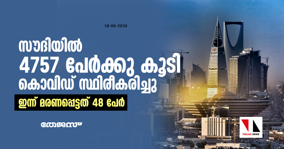 സൗദിയിൽ 4757 പേര്ക്കു കൂടി കൊവിഡ് സ്ഥിരീകരിച്ചു; ഇന്ന് മരണപ്പെട്ടത് 48 പേർ
