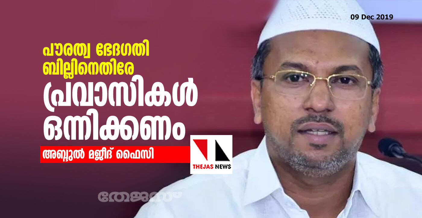 പൗരത്വ ഭേദഗതി ബില്ലിനെതിരേ പ്രവാസികള് ഒന്നിക്കണം: അബ്ദുല് മജീദ് ഫൈസി