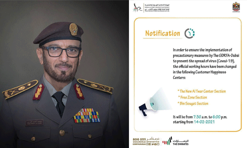 ജിഡിആര്എഫ്എ ദുബായുടെ മൂന്ന് ഓഫിസുകളുടെ പ്രവൃത്തി സമയത്തില് മാറ്റം