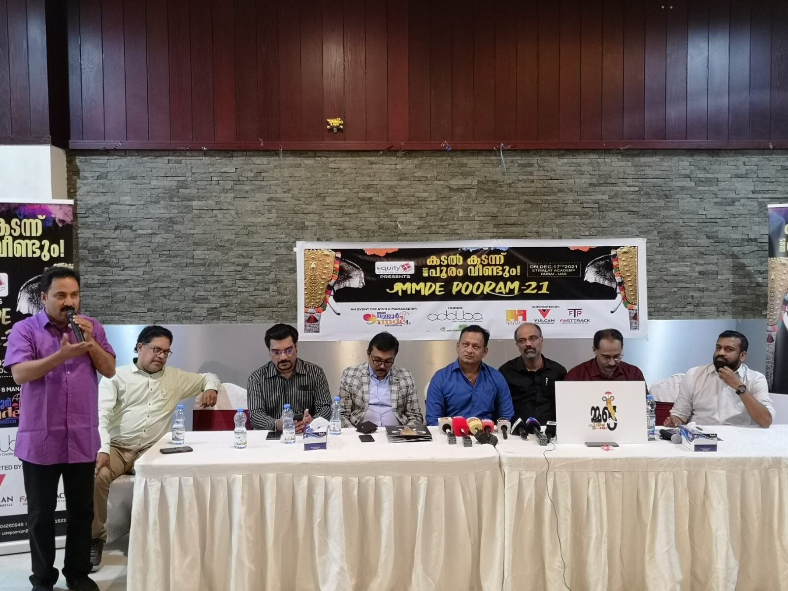 ദുബയ്: ലോക ചരിത്രത്തില് ആദ്യമായി തൃശൂരിന് പുറത്തേക്ക് ത്രിശ്ശൂര് പുരം എത്തിച്ച കൂട്ടായ്മയായ 'മമടെ ത്രിശ്ശൂര്' ഒരിക്കല് കൂടി ദുബയില് തൃശ്ശൂര് പുരം അരങ്ങേറുന്നു. ദുബയ് എത്തിസലാത്ത് അക്കാഥമിയില് നടത്തുന്ന പൂരം കാണാന് കോവിഡ് മാനദണ്ഡങ്ങള് പാലിച്ച് 8,000 പേരെങ്കിലും എത്തുമെന്ന് സംഘാടകര് വാര്ത്താ സമ്മേളനത്തില് അറിയിച്ചു. കോവിഡ് മഹാമാരിയാല് അവശത അനുഭവിക്കുന്ന വിവിധ മേഖലയില് ഉള്ള കലാകാരന്മാരെ പങ്കെടുപ്പിച്ചാണ് പുരം നടത്തുന്നതെന്ന് പ്രസിഡന്റ് രാജേഷ് മേനോന് പറഞ്ഞു.