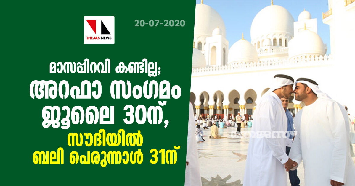 മാസപ്പിറവി കണ്ടില്ല, അറഫാ സംഗമം ജൂലൈ 30ന്; സൗദിയില് ബലി പെരുന്നാള് 31ന്