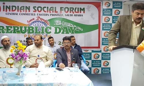ഡോ. ഫയാസ് (കിങ് ഫഹദ് യൂനിവേഴ്സിറ്റി ഹോസ്പിറ്റല്) മുഖ്യാതിഥിയായിരുന്നു. നാസര് കൊടുവള്ളി (കേരളം), ഷരീഫ് (കര്ണാടക), ജഹാംഗീര് മൗലവി (തമിഴ്നാട്), ഇന്ത്യ ഫ്രറ്റേണിറ്റി ഫോറം റീജ്യനല് കമ്മിറ്റി എക്സിക്യൂട്ടീവ് അംഗം അമീര് മൗലവി, നമീര് ചെറുവാടി, അഷ്റഫ് പുത്തൂര് സംസാരിച്ചു. ഫിറോസ് ജുബൈല് ഇന്ത്യന് ഭരണഘടനയുടെ ആമുഖം വായിച്ചു. ഇന്ത്യന് സ്വാതന്ത്ര്യസമരചരിത്രം വിവരിക്കുന്ന ഹ്രസ്വചിത്രവും പരിപാടിയില് പ്രദര്ശിപ്പിച്ചു. താഹിര് ഹൈദരാബാദ് അവതാരകനായിരുന്നു. പ്രവിശ്യയിലെ സാമൂഹ്യ, സാംസ്കാരികരംഗത്തെ പ്രമുഖര് അടക്കം നിരവധിപേര് സംബന്ധിച്ചു.